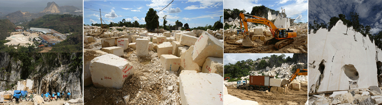 PT Pumarin. has two marble quarries in Citatah Village, Padalarang West Java namely : Meyud and Sanghyang quarries. The Meyud quarry can provide 6,000 m3 of Marble Blocks or 72,000 m2 of Tiles and Slabs annually. Whereas the Samghyamg quarry is dedicated to support the company in producing Calcium Carbonate products in the near future.